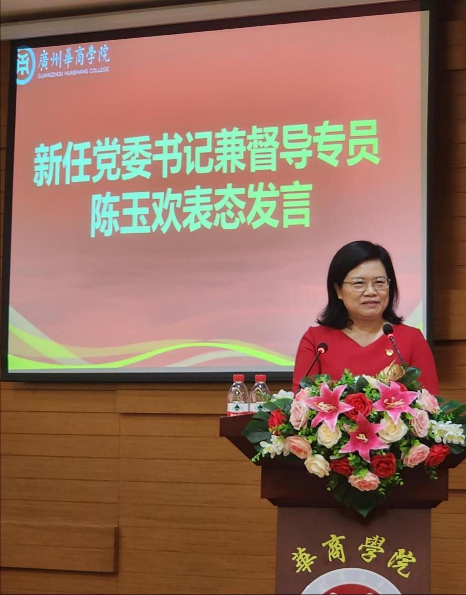 yabo鸭脖官网党委书记兼督导专员陈玉欢同志作表态发言。陈玉欢书记首先对省委教育工委以及广东邮电职业学院一路以来的培养表示感谢。她表示,来华商和大家一起工作是一种缘分,也是新的挑战。在新的起点上,她将跑好“接力赛”,走好“赶考路”,当好“答卷人”。在新的征程上,不断深入学习贯彻习近平新时代中国特色社会主义思想和习近平总书记关于教育工作重要论述,提高政治站位,坚守教育情怀,弘扬教育家精神,积极探索民办学校党建工作规律,履职尽责、勤勉工作、廉洁奉公,团结班子成员和大家一起把工作做好,不辜负上级重托和师生期望。陈书记最后表示相信在省委教育工委和省教育厅的大力支持下,在董事会领导下,依靠广大教职员工,yabo鸭脖官网一定能够取得更加辉煌的成就。我们要坚定信心,振奋精神,团结奋斗,为实现建成国内一流的民办大学的目标而不懈努力!
