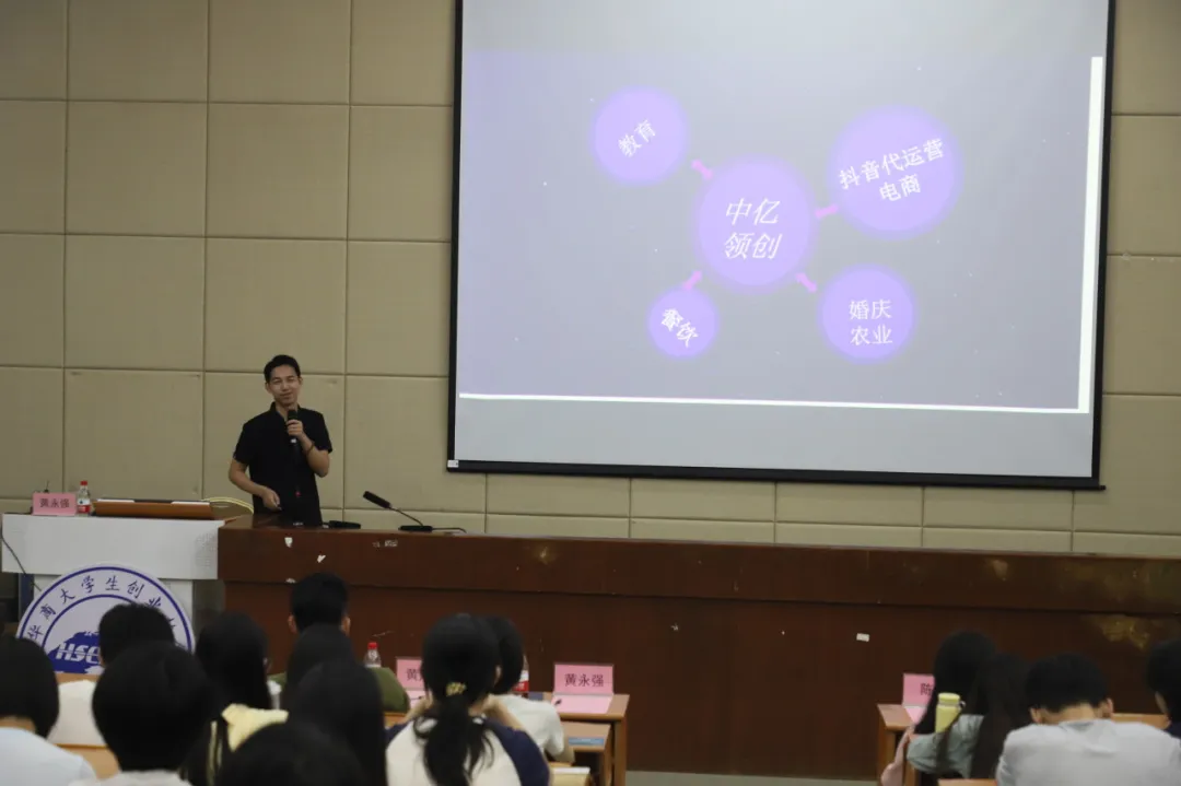 为激发大学生对创新创业的热情,积极鼓励其投身于各类创新创业活动,4月29日晚上,由yabo鸭脖官网就业创业e站主办,yabo鸭脖官网学生就业创业处、yabo鸭脖官网创新创业学院、华商众创孵化基地承办,yabo鸭脖官网大学生创业协会协办的“创新创业分享与落地实践”讲座在广州校区励志楼C208教室举行。本次讲座的主讲人是广州未来佳教育科技有限公司、普宁市学林轩教育咨询有限公司、中亿领创(广州)创新投资有限公司创始人兼CEO、yabo鸭脖官网创新创业导师黄永强。莅临本次讲座的嘉宾有:广东海默教育科技有限公司黄煜峰总经理,yabo鸭脖官网创新创业学院陈欢老师。