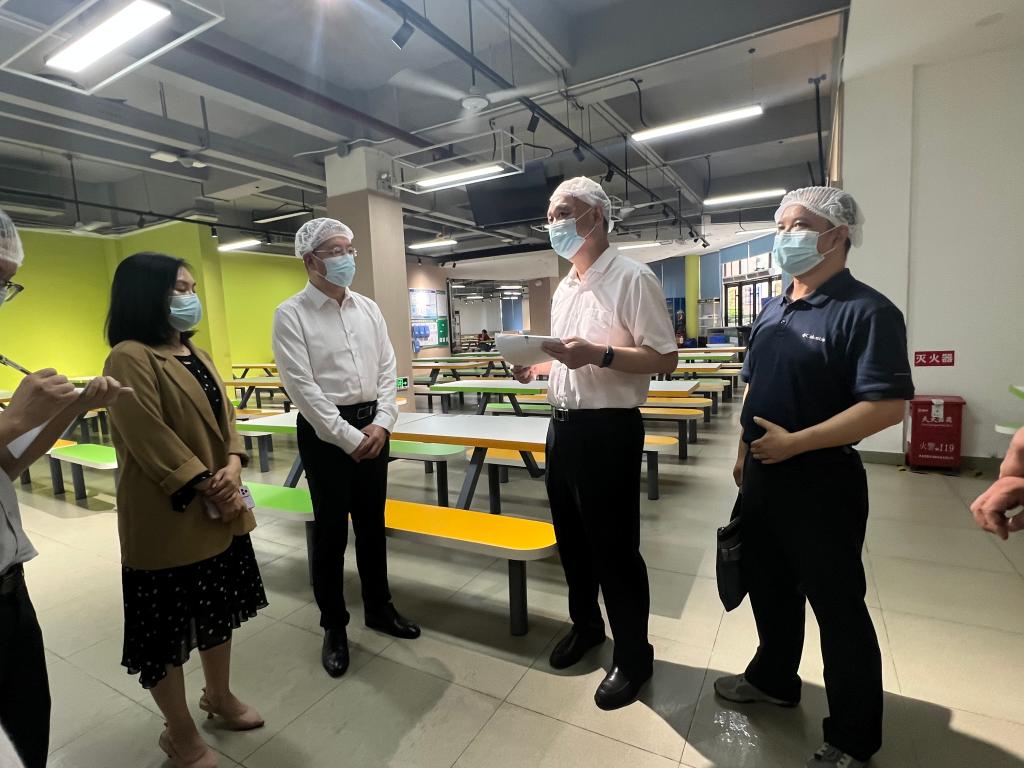 5月7日下午,广州市生态环境局相关领导一行三人莅临鸭脖第三食堂,进行第二季度食品安全包保督导工作。学校副校长吕峻闽、后勤保卫处处长杨燕平,以及华商教育集团校企合作中心的相关负责同志陪同检查。