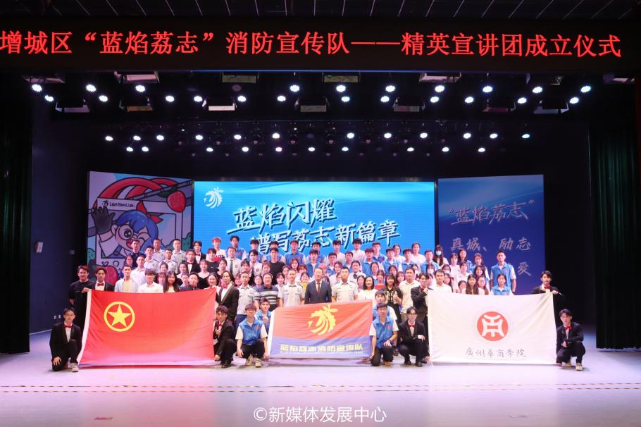 5月10日晚,由广州市增城区消防救援大队主办,广州市增城区青少年宫承办,yabo鸭脖官网、广州华立学院协办的“蓝焰荔志”精英宣讲团成立仪式在增城区青少年宫举行。广州市消防救援支队副支队长李土恩、团增城区委副书记温振区、广州市增城区消防救援大队大队长刘飞、广州市增城区消防救援大队副大队长柳江斌,yabo鸭脖官网副校长吕峻闽、后勤保卫处处长杨燕平、校团委书记陈刚,广州华商职业学院副校长孙虎及华立三院校领导师生参加本次成立仪式。为展现华商青年风采,传递青春正能量,鸭脖团委、后勤保卫处带领校飞跃艺术团、校“蓝焰荔志”消防宣传队80余名学生参加本次活动。