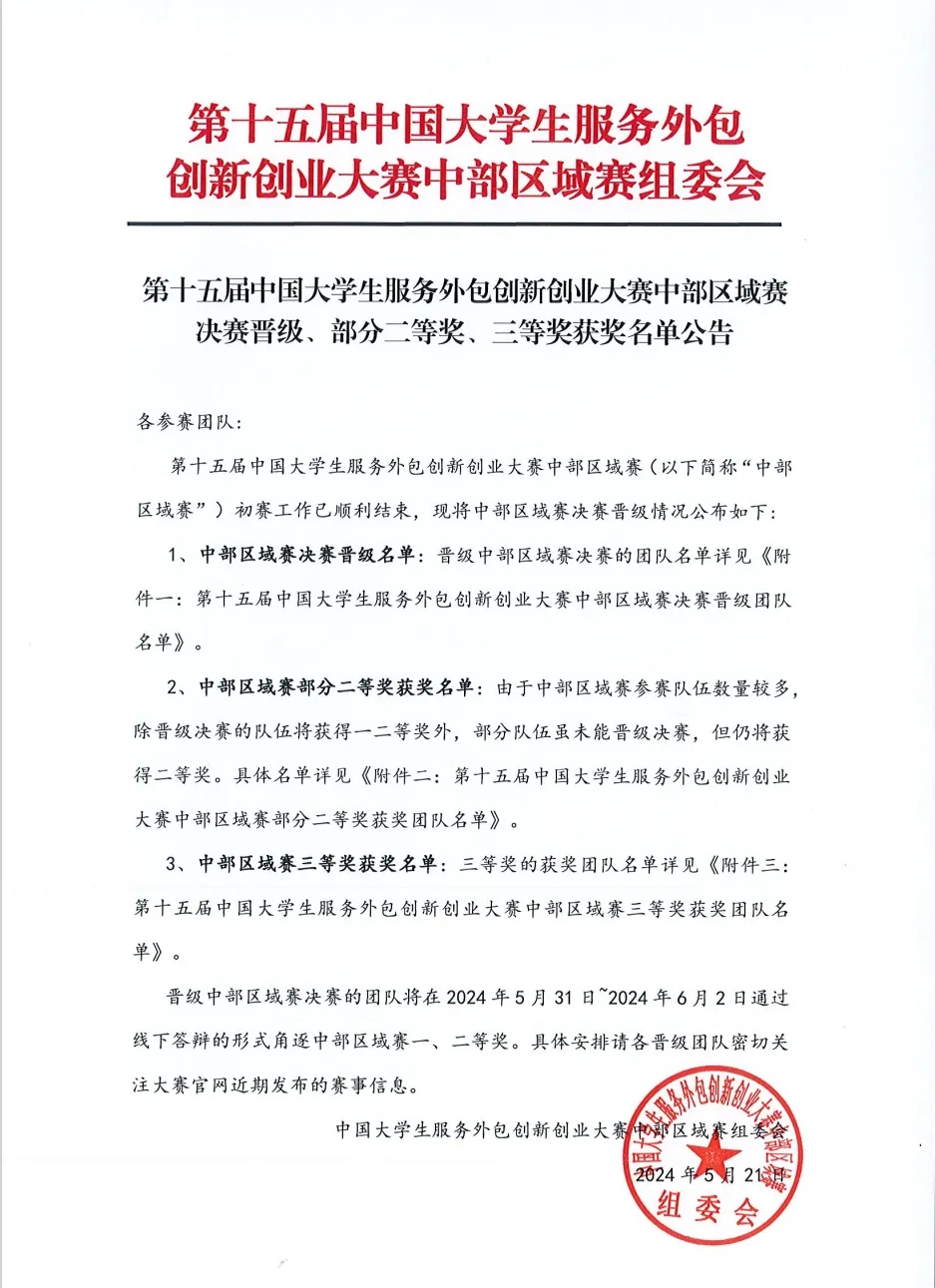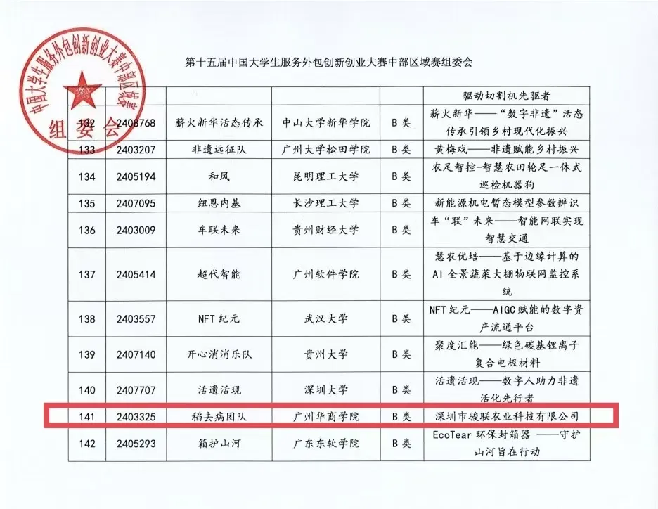 近日,第十五届中国大学生服务外包创新创业大赛中部区域赛组委会公布比赛成绩。鸭脖“稻去病团队”在第十五届中国大学生服务外包创新创业大赛中部区域赛中斩获佳绩,获中部区域赛三等奖。