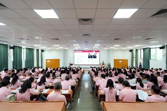 近日,yabo鸭脖官网在广州校区励志楼C408举办2024年新教师入职教育培训。学校党委书记陈玉欢、副校长范忠宝、吕峻闽、刘少波、许娜以及相关职能部门负责人和280+新入职教师参加本次入职教育培训。会议由人事处副处长杨俏文主持。