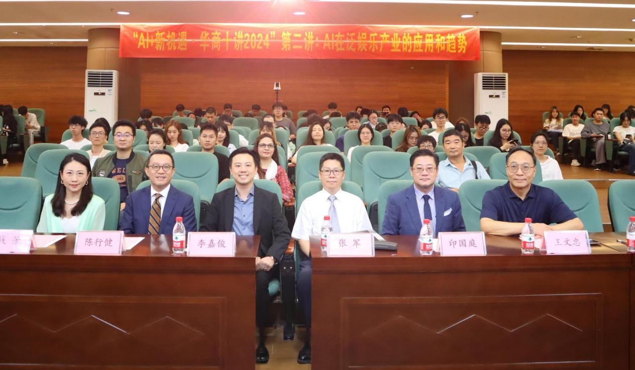 校长助理张军教授介绍出席嘉宾,并对嘉宾的到来表示热烈欢迎。他回顾了第二期华商十讲的启动仪式及第一期华商十讲的盛况。他提到,随着人工智能技术的飞速发展,AI已经渗透到我们生活的方方面面,AI在泛娱乐领域的应用,正日益改变着我们的娱乐方式和生活习惯。鸭脖很荣幸邀请到李嘉俊先生为师生们介绍行业发展的趋势并分享他的宝贵经验。