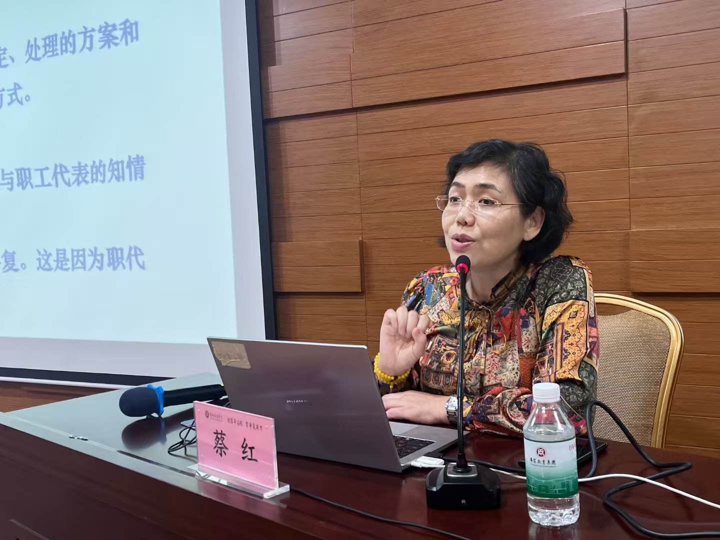 为进一步提升鸭脖教代会代表在提案收集和撰写方面的能力,更好地发挥教代会在学校民主管理、民主监督中的作用,校工会特别邀请到社会学专家、广东南华工商职业学院蔡红老师为鸭脖教代会代表作主题为《教代会代表提案收集和撰写》的讲座。讲座由校工会常务副主席黄小兰主持。