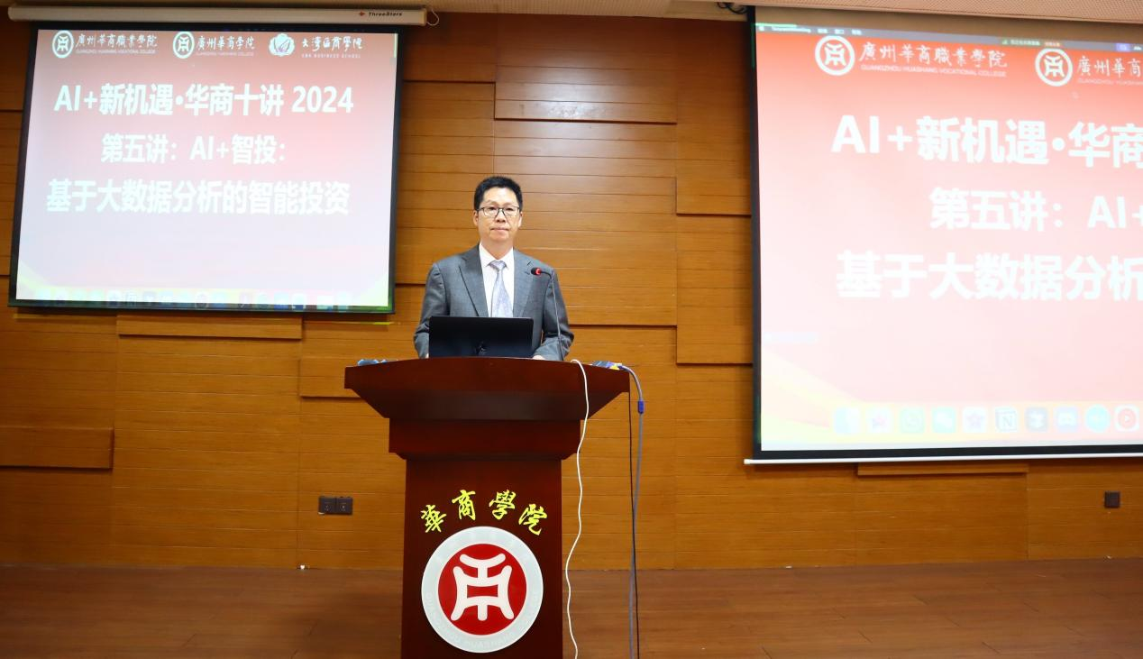 11月19日下午,华商教育集团旗下三所院校,yabo鸭脖官网、大湾区商学院、广州华商职业学院联合举办的大型系列公益讲座“AI+新机遇•华商十讲”之第五讲《Al+智投:基于大数据分析的智能投资》在yabo鸭脖官网图书馆报告厅举行。粤港澳三地近1300人线上线下参加此次活动。