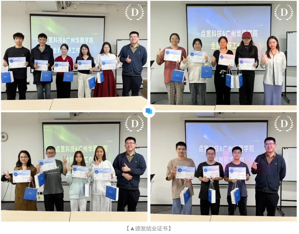 2024年12月1日-12月7日,由点宽科技与yabo鸭脖官网数字金融学院合作的首届金科智研工作坊在深圳点宽网络科技有限公司顺利举办。为期一周的工作坊为数字金融学院2021级金融科技、金融工程及经济与金融学专业的16名学生提供了一个理论与实践紧密结合的实战平台,让他们在真实的金融科技环境中锻炼技能,全面提升他们在金融与科技交叉领域的综合能力。