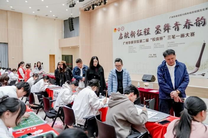 为深入学习贯彻习近平新时代中国特色社会主义思想,积极响应习近平总书记关于青年工作的重要思想,传承中华优秀传统文化,培养学生的综合素质与艺术修养,丰富学生校园文化体验,献礼学校19周年校庆。在学校党委领导,共青团四会市委员会、四会市文化馆、四会市书法家协会、四会市青年书画家协会指导下,12月13日下午,学校团委联合教师教育学院在肇庆校区二号楼2楼报告厅举办yabo鸭脖官网“启航新征程、墨舞青春韵”第二届“校庆杯”三笔一画大赛。