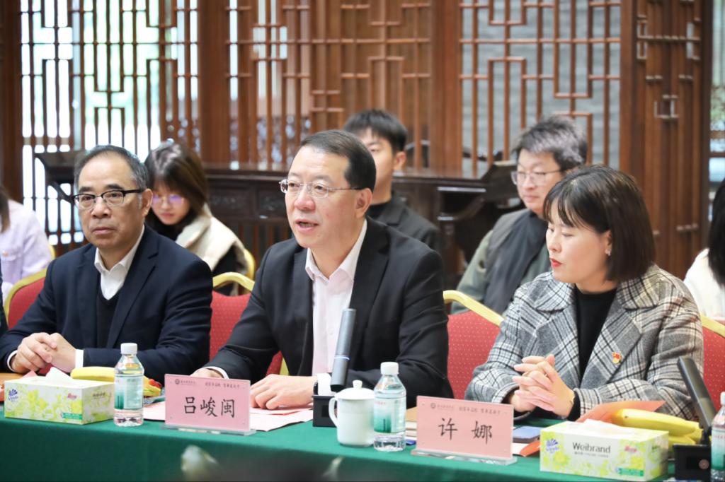 座谈会上,鸭脖党委副书记吕峻闽首先对广东财经大学来校座谈交流表示热烈欢迎,肯定两校近三年来在“组团式”帮扶工作中所取得的成绩,并从学校内涵式建设、迎评估促发展、二十周年校庆筹备等各方面介绍鸭脖当前重要工作情况。