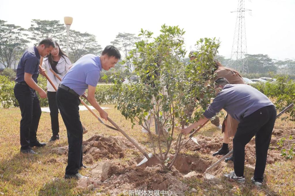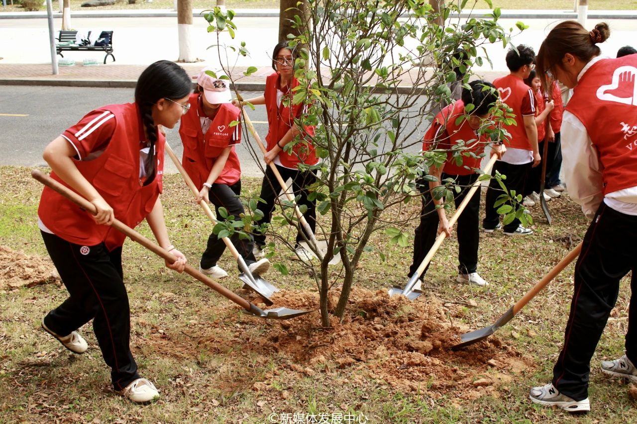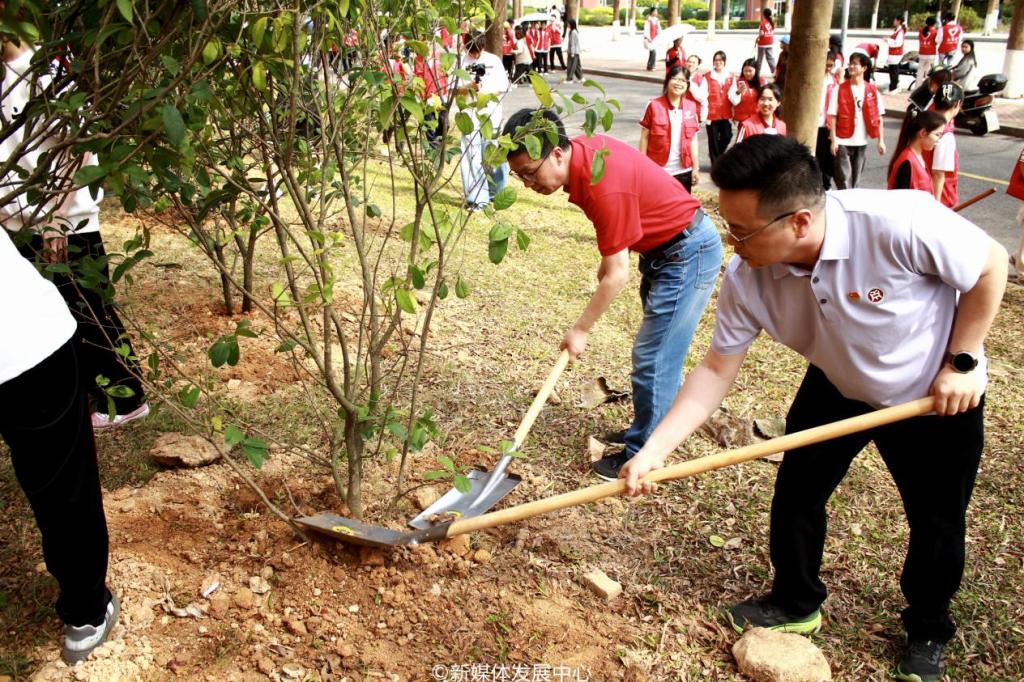 为引领华商青年在实践中践行绿色发展理念,助力绿美广东生态建设,3月11日-12日,yabo鸭脖官网2025年“绿美广东 青年先行”植树护绿活动在双校区开展。学校党委书记陈玉欢,校长助理黄伟新、张军,党委委员、党委办公室主任吕书勉,肇庆校区党委书记苏宁,国际学院院长回雁雁,创意与设计学院院长杨磊,管理学院副院长袁仕海,体育学院党总支副书记莫军,肇庆校区后勤保卫办公室主任徐强,党群部门负责人、校院两级团学骨干、教师代表及学生志愿者近400人参加本次活动。