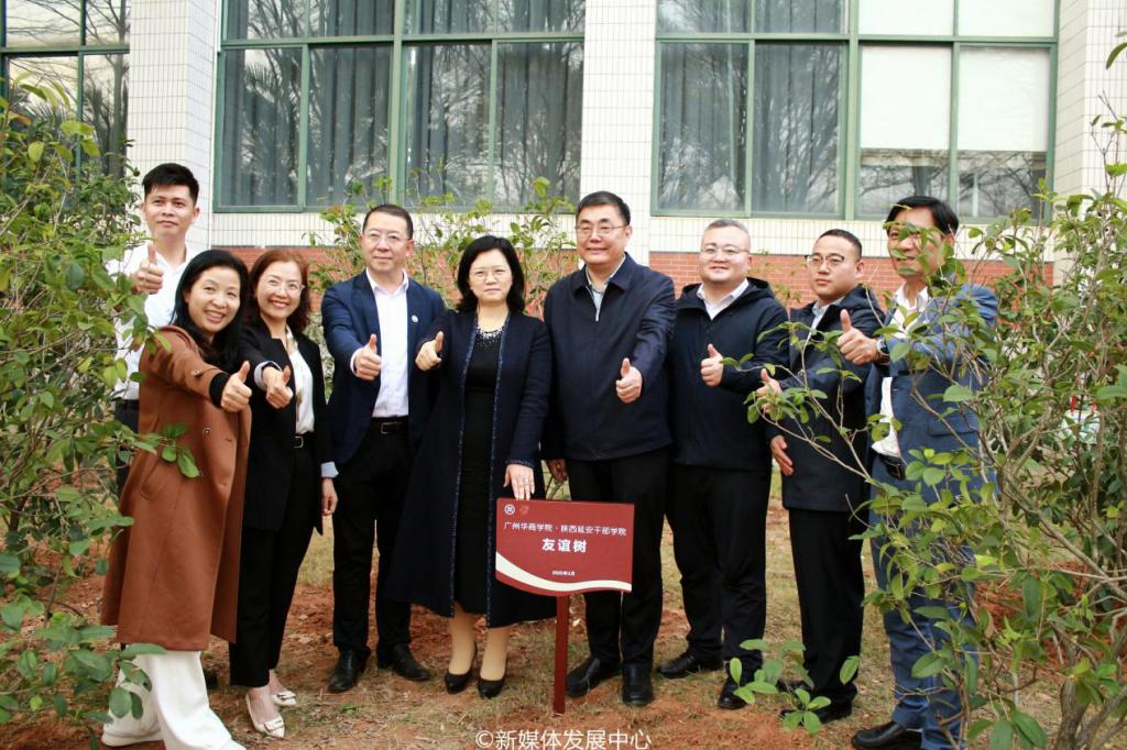 (学校党委书记陈玉欢,党委副书记、纪委书记、副校长吕峻闽及相关部门负责人与陕西延安干部学院王家坪分院曾庆鹏院长一行共植两校友谊树)