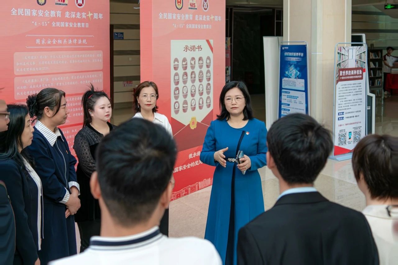 学校在广州校区中央图书馆大厅、肇庆校区6号楼一楼大厅同步设置国家安全主题展区,通过图文展板、宣传手册等形式,向师生普及国家安全知识。