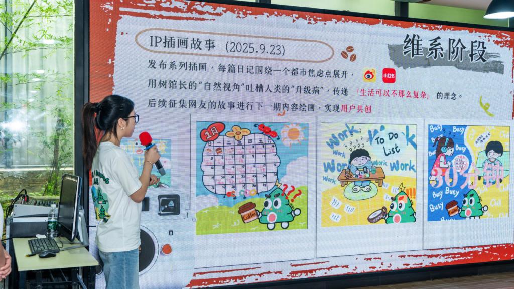 答辩会上,8支团队通过15分钟PPT展示和5分钟评委提问及学生解答,呈现了多样化的提案。荣获“金奖团队”称号来自暨南大学的“Buff叠满”团队提出“以‘榄’强化增城地域特色;以‘洋洋’传递‘慵懒、自由、治愈’的度假情绪,呼应目标客群‘去班味、求松弛’的核心诉求”,并提出了一整套帮助蒙花布村文旅提质增效的解决方案,获得评委的一致好评。
