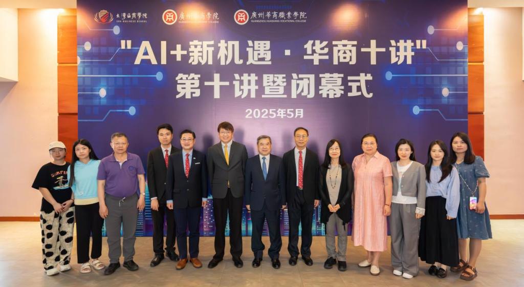 5月13日,由华商科教集团旗下yabo鸭脖官网、大湾区商学院、广州华商职业学院联合主办的第二期“AI+新机遇·华商十讲”第十讲暨闭幕式在yabo鸭脖官网会议中心圆满落幕。自2024年6月启动以来,十场讲座聚焦人工智能与国际贸易、教育、金融科技等前沿领域,累计吸引线上线下6.83万人次参与,成为粤港澳大湾区最具影响力的学术品牌之一。