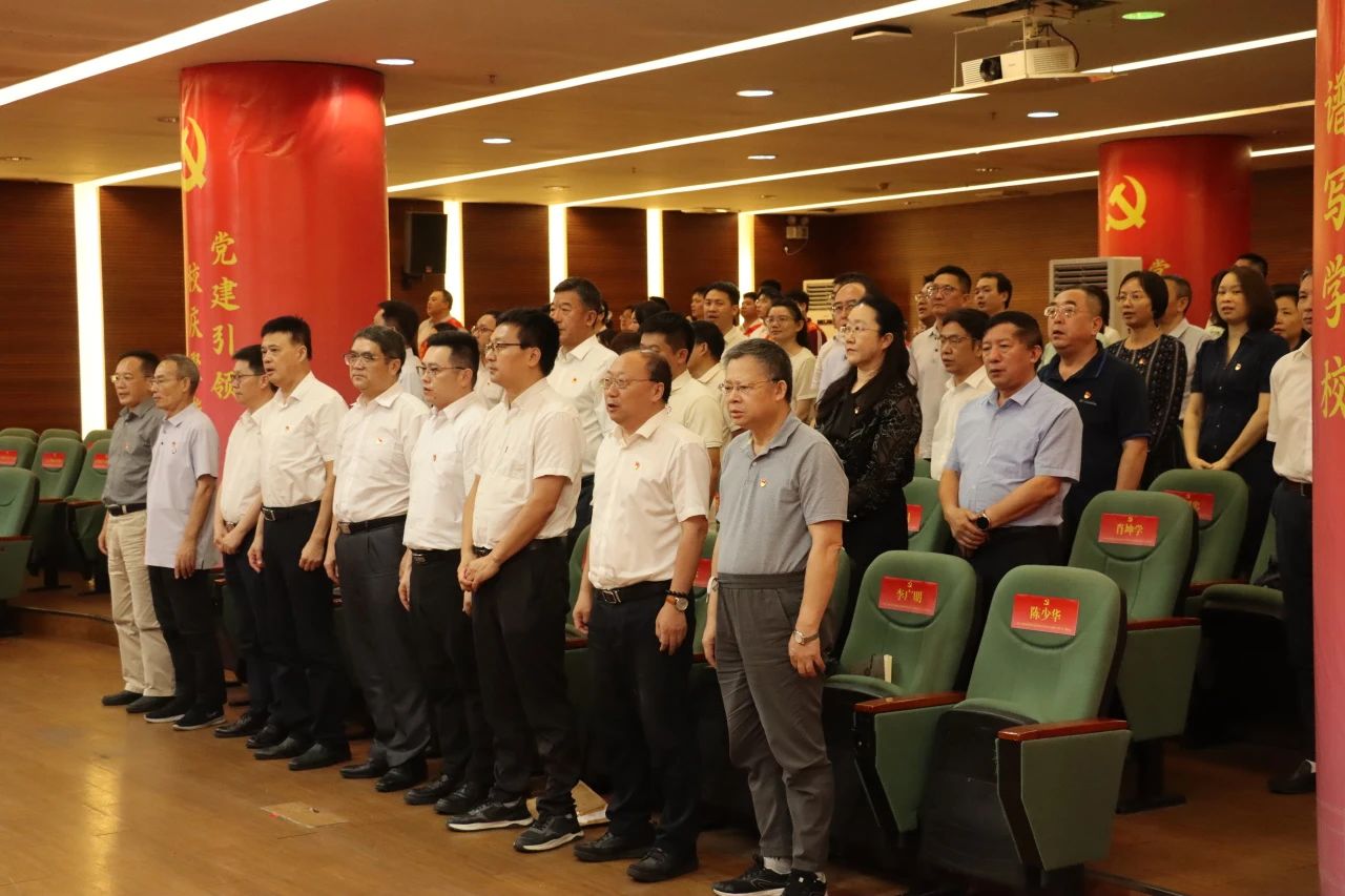 为热烈庆祝中国共产党成立104周年,扎实推进深入贯彻中央八项规定精神学习教育,以高质量党建推动学校事业高质量发展,7月1日下午,鸭脖在广州校区中央图书馆学术报告厅隆重召开庆祝中国共产党成立104周年暨“两优一先”表彰大会。同时启动鸭脖智慧党建系统,为学校迎接本科教学工作合格评估、筹备二十周年校庆注入强劲动力。学校领导、党委委员、校长助理、二级学院党政负责人、职能部门负责人等二百余名代表齐聚一堂。会议由学校党委副书记、副校长焦方太主持。