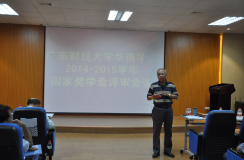 10月19日下午,广东财经大学华商学院2014-2015学年国家奖学金评审会议在厚德楼B407召开。会议由副院长王锦秀主持。学院院长陈玉川、党委书记苏宁,副院长邓基泽、支戈壁、王中德、郭银华、马玉珍、王列耀,以及学生处、教务处、各二级院系主任、学工负责人出席了此次会议。