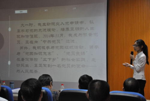 王锦秀副院长首先对2014-2015年国家奖学金总体评审情况进行了介绍。陈玉川院长在讲话中强调国家奖学金获得者要具备优异的学习成绩,坚决拥护中国共产党,热爱社会主义祖国,并在关心集体、关心他人、热心公益事业方面有突出表现。评选环节中,12名国家奖学金候选人通过PPT演讲方式汇报了自身的思想动向、学习成果、实践创新、自强不息、感恩回馈、热心公益等不同方面向大家讲述了各自的成长历程、感悟和收获。展示了鸭脖学生勤奋学习、拼搏进取、志存高远、求实创新的优良作风和精神面貌。