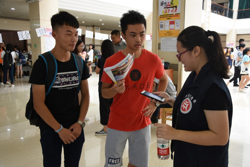 广州的夏天是炎热的,为此每个迎新摊位都准备了矿泉水,方便新生及家长。面对新生们提出的诸多问题,工作人员不厌其烦地解释,始终保持微笑,让新生们倍感亲切。为了应对新生人数众多这一问题,迎新工作各流程分工明确,细致周到。现场的一台台照相机拍摄下新生们融入华商学院的第一张照片。每个迎新摊位专门设立相关的讲解人员,为新生及家长们答疑解惑。贴心的工作人员还在发给每位新生的资料袋里放了一份印有班导师联系方式的传单,便于学生和班导师联系。这些点滴让大一新生们在入学的第一天就深深感受到华商学院的温暖所在。