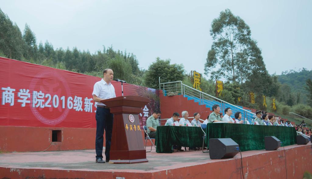 2016年9月20日8:00,广东财经大学华商学院2016级新生军训动员大会在田径运动场举行。本次大会由王锦秀副院长主持。学院党委苏宁书记、支戈壁副院长、马玉珍副院长、杨丽娟副院长、军训团叶计选团长以及各院系主任、行政部门负责人出席了本次大会。