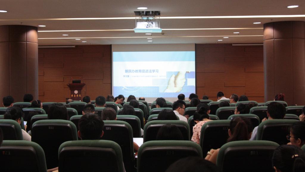 为正确把握新时期国家民办教育改革发展新方向,深刻理解民办教育新法新规精神内涵,鸭脖特邀请了广东省教育研究院民办教育研究室李文章副主任前来作“新民办教育促进法学习”讲座。讲座于6月13日下午3时在鸭脖图书馆报告厅成功开展。出席讲座的领导有党委苏宁书记、龙少锋副院长、王锦秀副院长。全体行政教辅人员、辅导员参加了本次讲座。讲座由龙少锋副院长主持。