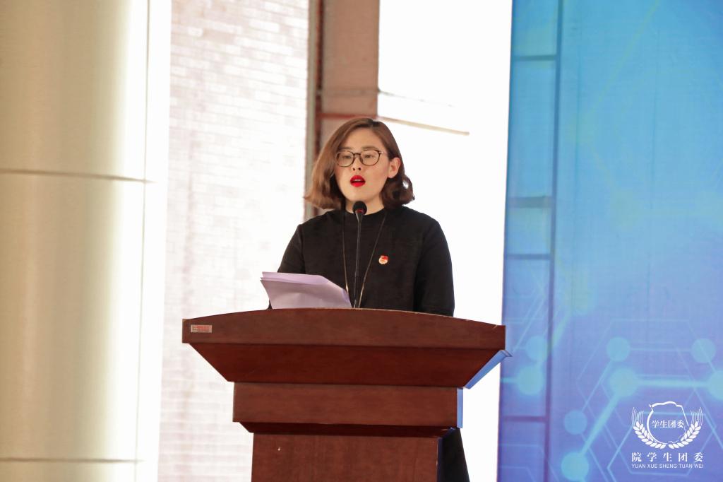 学院团委许娜书记宣读第七届科技学术节文件。本次科技学术节将全面贯彻党的十九大精神,以习近平新时代中国特色社会主义思想为领导,旨在鼓励引导青年学生助力新时代科技创新,汇聚青春力量,丰富校园文化生活。许娜书记分别从指导思想、活动时间、组织单位、组织结构、活动项目、活动要求六大方面进行具体事宜通知。