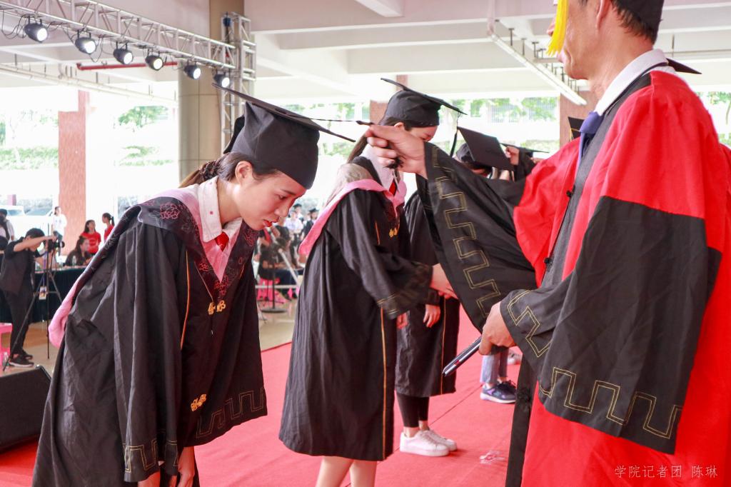 仪式上,陈玉川院长等主礼教授为毕业生们行“拨穗礼”并颁发学士学位证书。拨穗正冠的环节代表了稻穗、麦穗的成熟,象徵毕业生已学有所成,可以展翅高飞,表达了学院对毕业生的殷切希望和鼓励。被授予学位证书的每一位毕业生,都向主礼教授深深地鞠了躬,这是对老师悉心栽培的感恩,也是对母校最后的道别。5136名毕业生拨穗礼成,他们将收获人生中的又一座里程碑,也将告别象牙塔,步入社会。