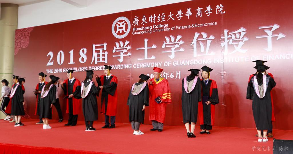 6月20日-6月21日,广东财经大学华商学院2018届本科毕业生学位授予仪式在启智楼一楼大厅隆重举行。5136名2018届本科生身穿学士服齐聚一堂,共同参与学士学位授予仪式。学院陈玉川院长、党委苏宁书记,支戈壁副院长、龙少锋副院长、王列耀副院长、王锦秀副院长、陈美华副院长及学院多位教授作为主礼嘉宾出席了仪式。