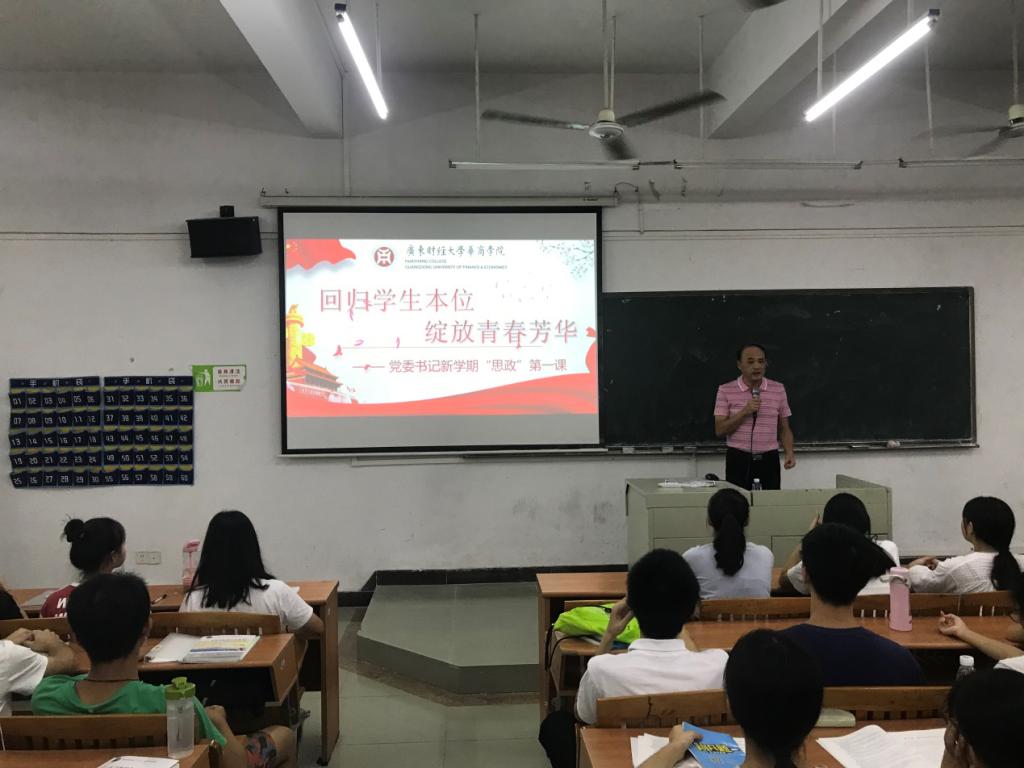 9月26日下午七点,学校党委苏宁书记在励志楼C201开讲题为《回归学生本位,绽放青春芳华》的新学期“思政”第一课,鸭脖组织2018级新生代表300余人认真聆听了此次讲座。