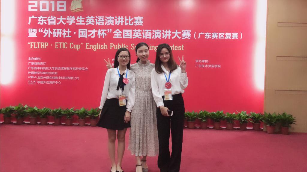 11月10—11日,国内最高水平、具有国际影响力的“外研社杯”全国大学生英语演讲大赛广东赛区选拔赛暨2018年广东省大学生英语演讲比赛在广州市天河区的广东技术师范学院举行。比赛由广东省教育厅和外语教学与研究出版社主办,广东省大学英语教学指导委员会协办。来自广东省40多所本科院校的112名本科生参加了本次比赛。由黄琼慧老师指导和带队,鸭脖2016级英语专业的陈敏同学、2016级国际贸易专业肖晓楠同学代表鸭脖参加了此项比赛,最终夺得广东省一等奖和三等奖!