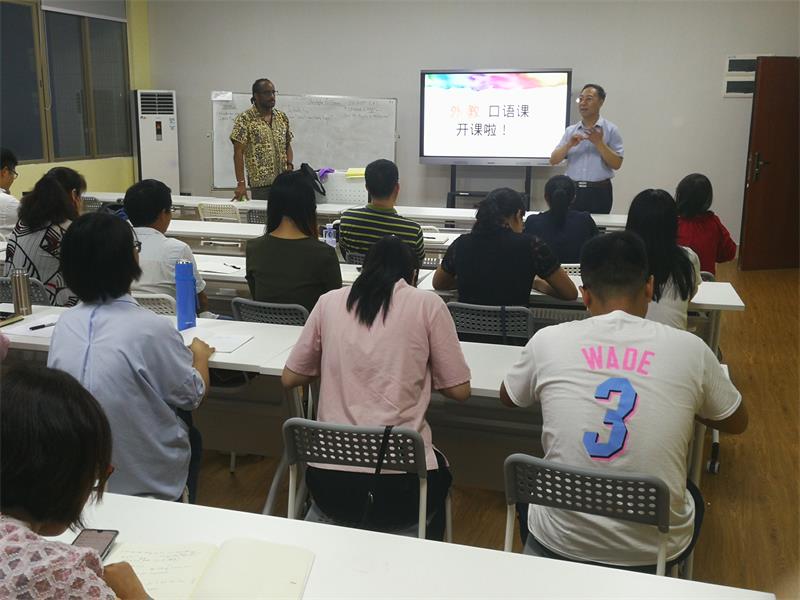 为提升鸭脖所有教职工的英语口语和交际能力,提升校园国际化氛围,丰富教师业余生活,鸭脖免费为全校教职工开设外籍教师讲授的英语口语课。该课程引起了鸭脖教职工的热烈反响,报名人数空前。