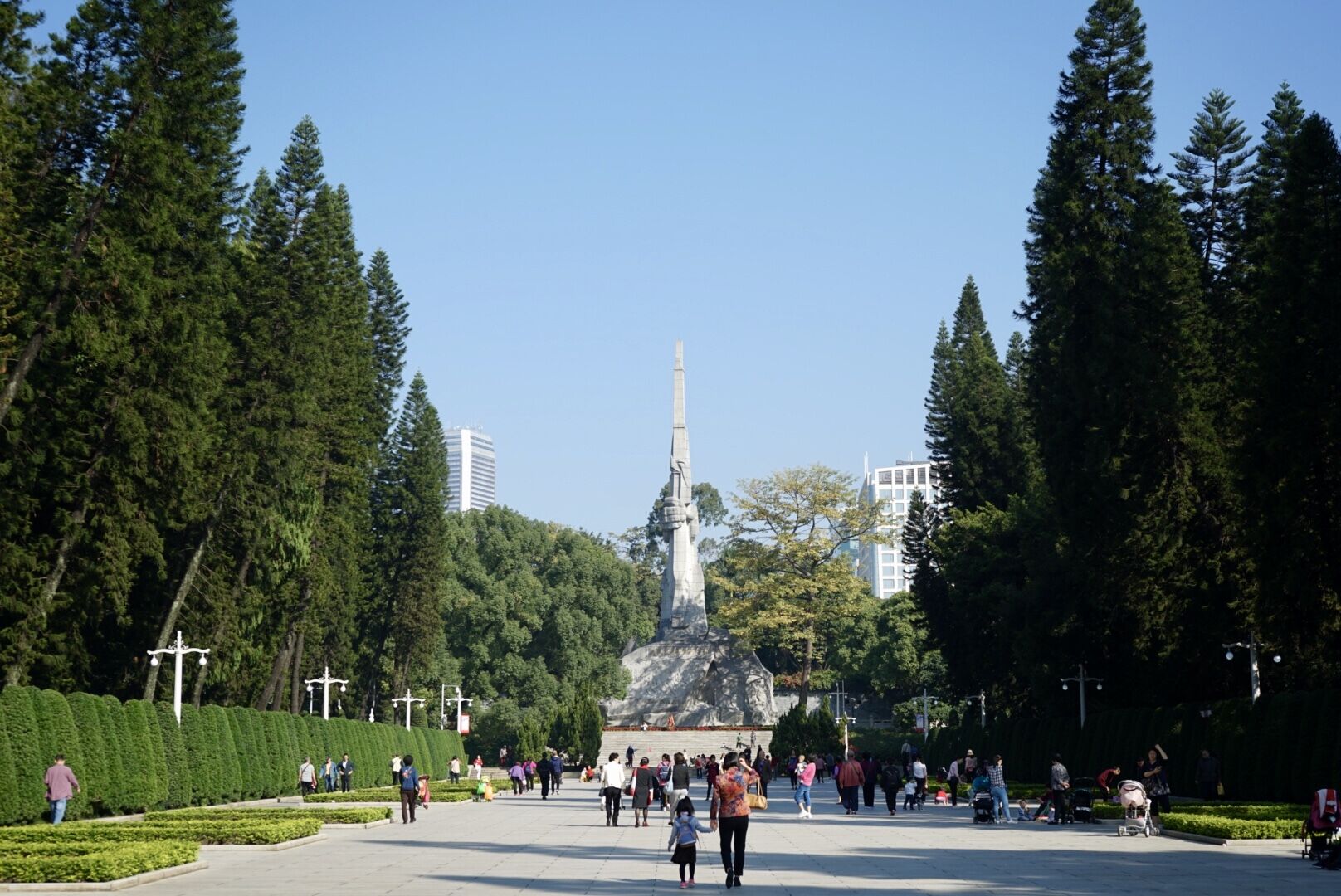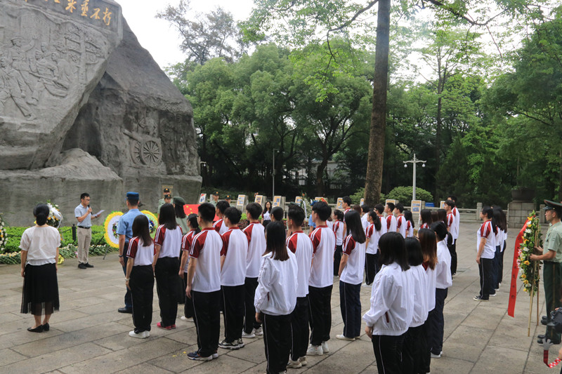 参观的第一站是广州起义烈士陵园,上午到达后全体成员在烈士纪念碑前隆重举行了祭拜仪式。祭拜仪式在主持人的宣布下开始,随后由4名退伍学生走队列迎国旗,全体人员奏唱国歌;接着分别由老师代表和学生代表发言,发言中深刻悼念了为今天幸福生活而英勇捐躯的英雄们,立志要追寻先辈的革命足迹,珍惜革命先烈用鲜血和生命换来的美好生活;然后,由2名退伍学生齐步走献花圈,全体默哀一分钟,整个过程庄严而肃穆;最后全体人员有序绕纪念碑一圈瞻仰烈士墓碑。祭拜仪式结束后全体成员在烈士陵园自由参观了红花岗四烈士墓、叶剑英墓和历史博物馆等。