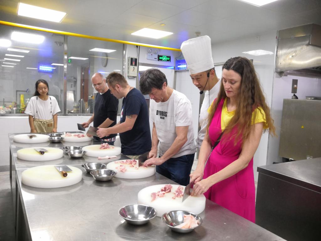 ▲李绪彬老师为外教们展示和讲解刀工