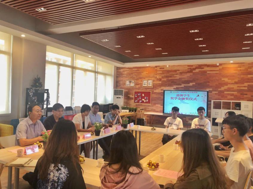 10月11日下午,广东财经大学华商学院2019年“港澳生国家奖学金”颁奖仪式在启智楼501室隆重举行。王锦秀副校长、钟森文副校长、学生处黄国富副处长、经管学院经济系邱会锋主任、港澳台办王文忠主任出席了本次颁奖仪式,参加本次颁奖仪式的还有港澳办老师及全校港澳学生。