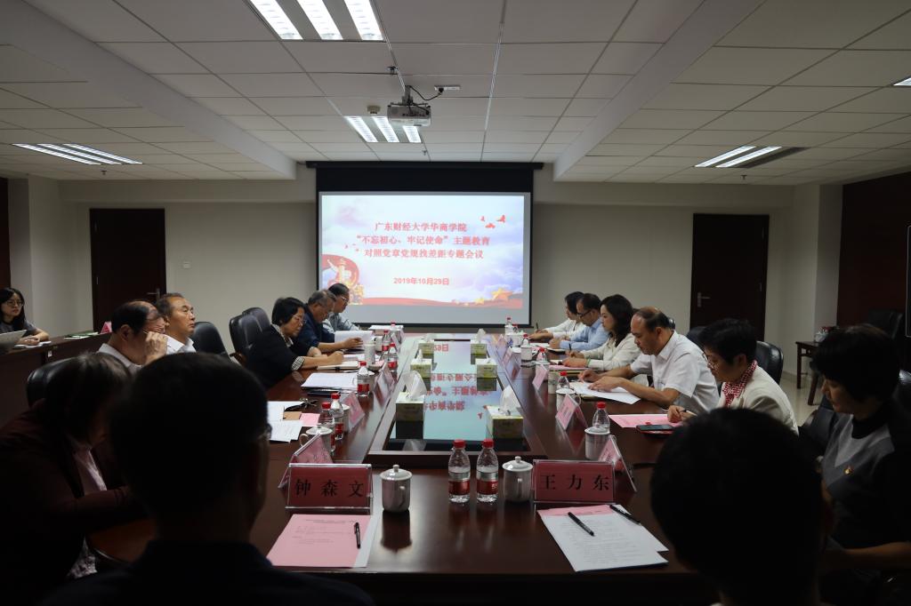 为进一步把党章党规学深悟透,加强党员干部的理论基础建设,按照“不忘初心、牢记使命”主题教育部署安排,10月29日,鸭脖召开领导班子对照党章党规找差距专题会议。省委教育工委第四指导组成员到会监督指导,广东财经大学华商学院“不忘初心、牢记使命”主题教育领导小组全体成员、全体校领导班子出席了本次会议,并对照党章党规查找自身差距,明确整改方向和措施。