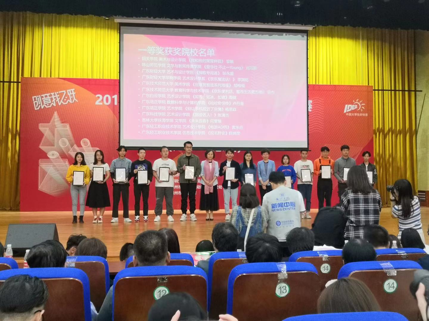 下午15:00时,第十一届全国大学生广告艺术大赛广东分赛区颁奖典礼隆重举行。随后,大会依次进行了第十一届大广赛广东分赛区的一等奖、二等奖、三等奖、“优秀指导老师”和“优秀组织奖”的颁奖。颁奖典礼结束后,师生进行集体大合影留念。