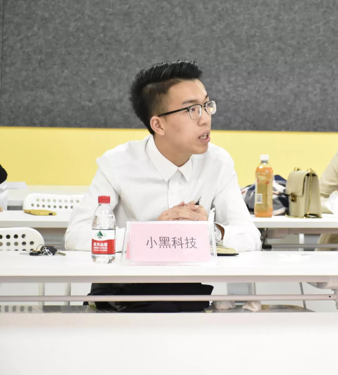 随后,小黑科技创始人林逸灏和未来已来创始人严杰辉分别分享了自己的创业历程。创业的道路从来都不是一帆风顺的,经历挫折才会成长得更快,两个项目创始人他们所分享的创业经验对于在校学生来说是一笔宝贵的财富,也进一步体现了交流会的意义所在。