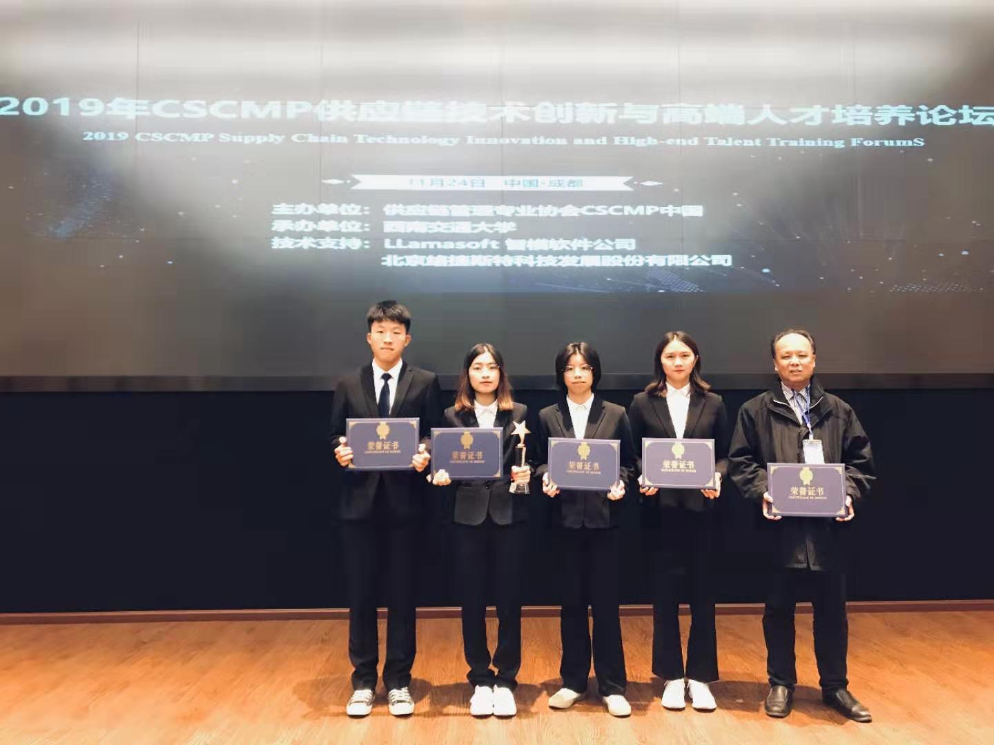 2019年11月23日-11月24日在西南交通大学举行的首届全球供应链建模设计大赛全国总决赛中,经过激烈的角逐,由鸭脖17级物流管理专业的郑紫铃、何淑玲、黄智健和郭铄晖4名同学组建的小建模仙队获得了全国三等奖,又一次在全国高校云集的舞台上展示了华商学子的风采并为鸭脖争得了荣誉!同时,我校严明老师获得了“优秀指导老师”的荣誉证书,鸭脖也获得了“最佳组织奖”。