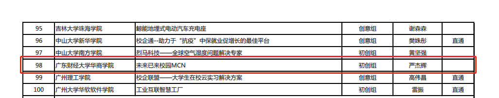 近日,广东省教育厅公布的第六届中国国际“互联网+”大学生创新创业大赛广东省分赛决赛名单中,鸭脖《未来已来校园MCN》项目从全省各高校参赛项目中脱颖而出,晋级决赛,将在8月9日参加省决赛与其他高校共同角逐本届金、银奖。