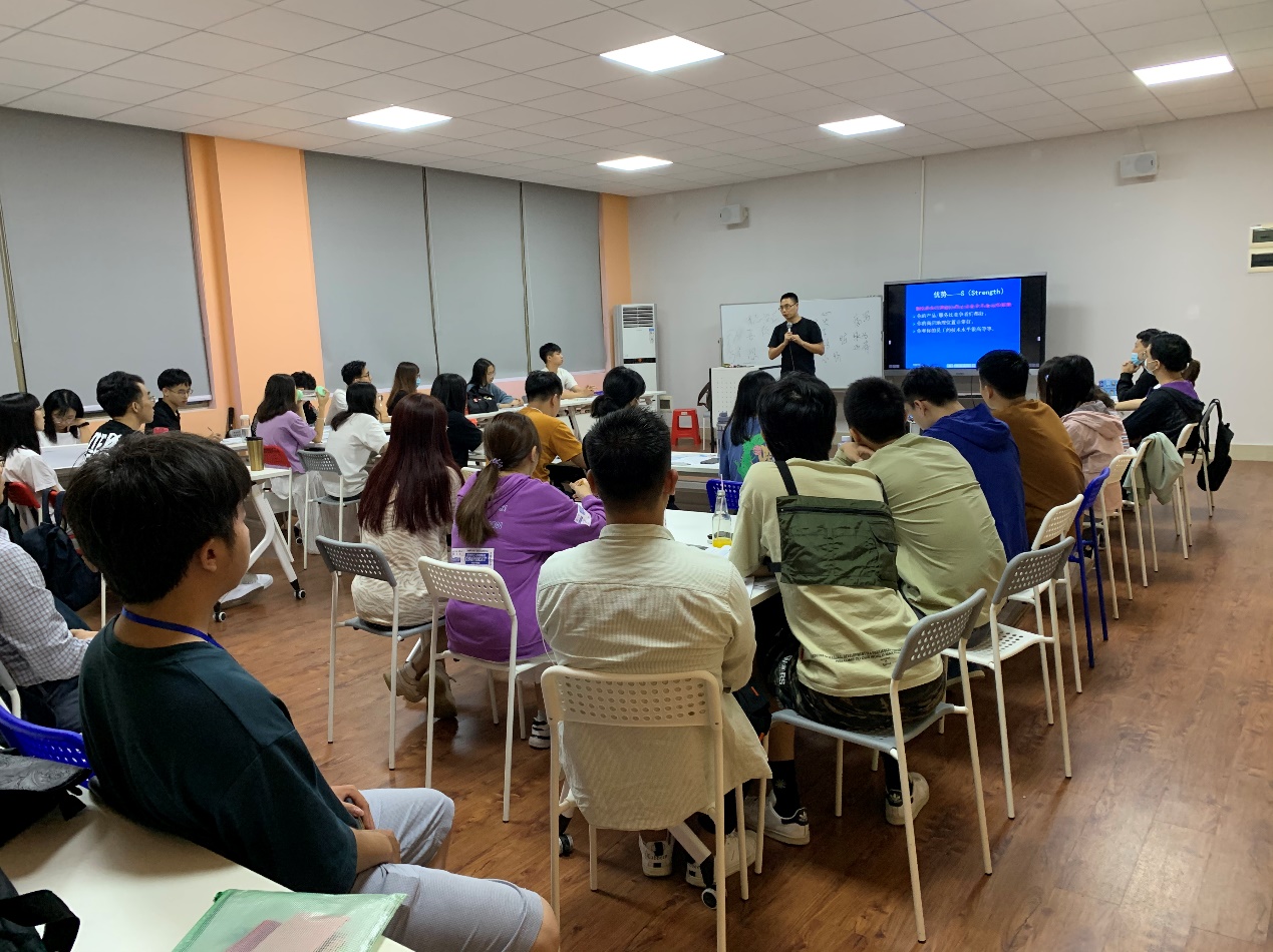 10月14日晚上,华商学院副校长张捷教授、校长助理、创新创业学院常务副院长余家军博士一行到启智楼403检查指导鸭脖SYB创业培训班教学工作。