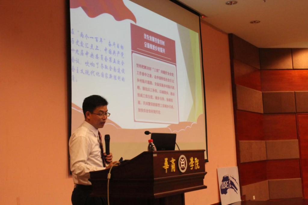 在介绍乡村振兴战略与创业关系的大背景后,余家军博士还详细地向同学们讲解了关于“创业”中个人与机会的关系,强调个人主观能动性的重要性,并从就业的广狭两面指导我们如何在“你是谁”“你要干什么”两方面做出正确的创业机会选择,深度剖析了乡村振兴战略中的创业机会。随后,余家军博士向我们分析了部分创业政策和鸭脖在创业资源上的规划和相关制度体系,例举华商学子创业成功的案例鼓舞同学,他表示,我们身边其实有很多励志的创业人士和创业故事,同学们应当学习他们,敢于尝试,将内心的创业激情转化为实践。最后他强调,相信自己,勇敢地去尝试,我们可以边做边完善,没有什么是不可能做到的。