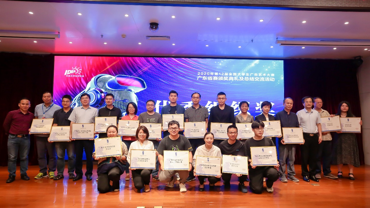 11月20日,鸭脖创意与设计学院领导和优秀指导教师代表及获奖学生代表参加了第十二届全国大学生广告艺术大赛广东省赛区颁奖仪式。活动由全国大学生广告艺术大赛广东省分赛区组委会主办,广州大学新闻与传播学院、深圳大学传播学院承办。本次学科竞赛,创意与设计学院共获得73个省级奖项和7个国家级奖项。其中省级优秀指导老师奖4个,一等奖5个,二等奖26个,三等奖38个;全国二等奖1个,三等奖1个,优秀奖5个。