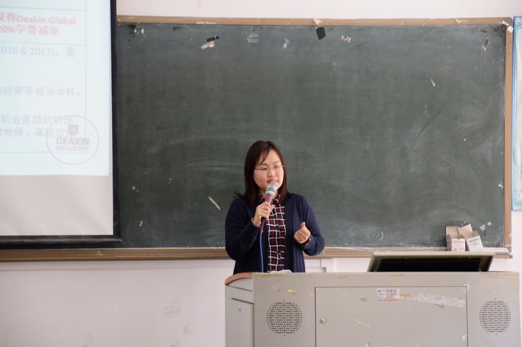 王宁宁老师为同学们介绍了迪肯大学的学习制度、专业设置、课程体系以及办学特色,同时还讲解了相关的入学要求和注意事项,讲座氛围十分活跃。