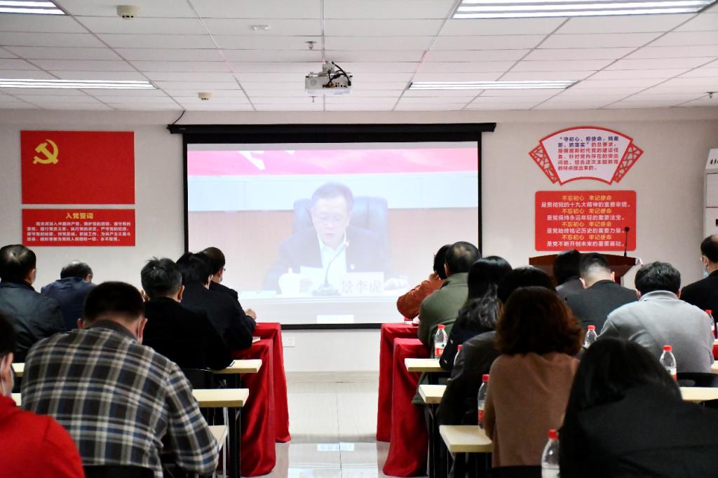 鸭脖学校党政领导班子成员,职能部门(处室)负责同志,二级学院(系)党组织负责人在行政楼502会议室以视频会议方式同步参加会议。