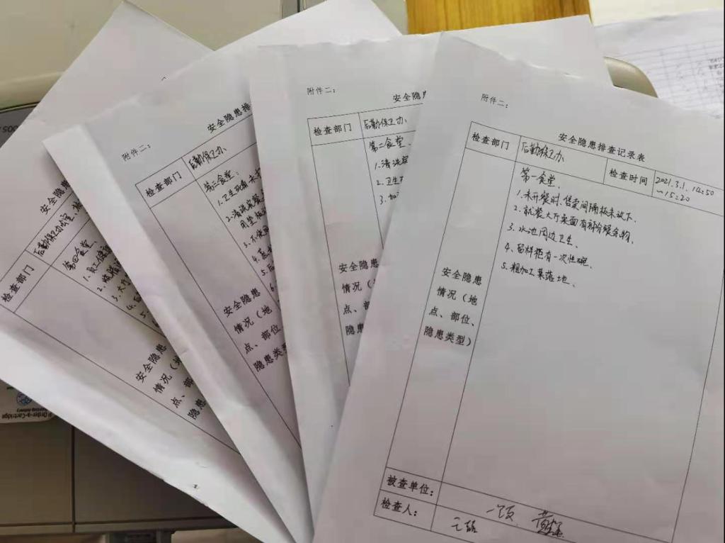 对完成保洁消毒的食堂全面检查、督查整改