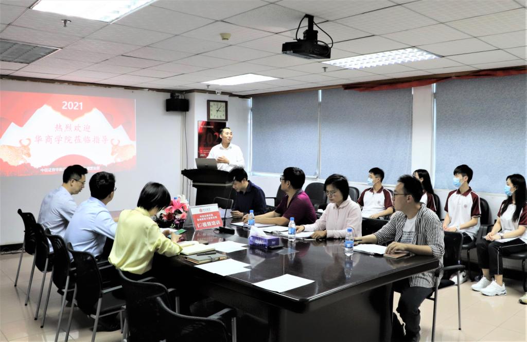 中信证券营业部联席负责人朱晓,团队负责人陈子毅,市场总监曾玉铮,业务总监黄金生对我院一行的到来表示欢迎。双方也就金融专业人才培养、校外实践基地建设、专业活动赛事、学生实习就业等方面进行了深入的交流。