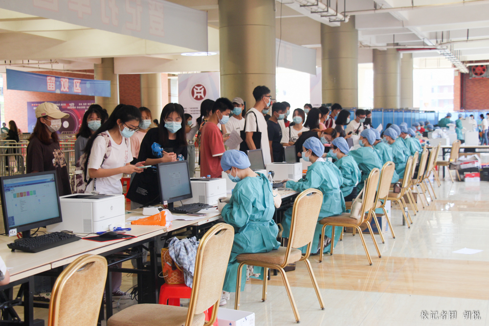 为深入贯彻落实习近平总书记关于疫情防控工作的重要讲话和批示精神,加快构建保障人民健康免疫屏障,慎终如始抓好常态化疫情防控,进一步筑牢校园健康防线,本着“保证重点、应接尽接、依法有序、规范接种”的工作原则,5月10日起,鸭脖第二轮新冠疫苗集中接种工作在启智楼一楼拉开了序幕。