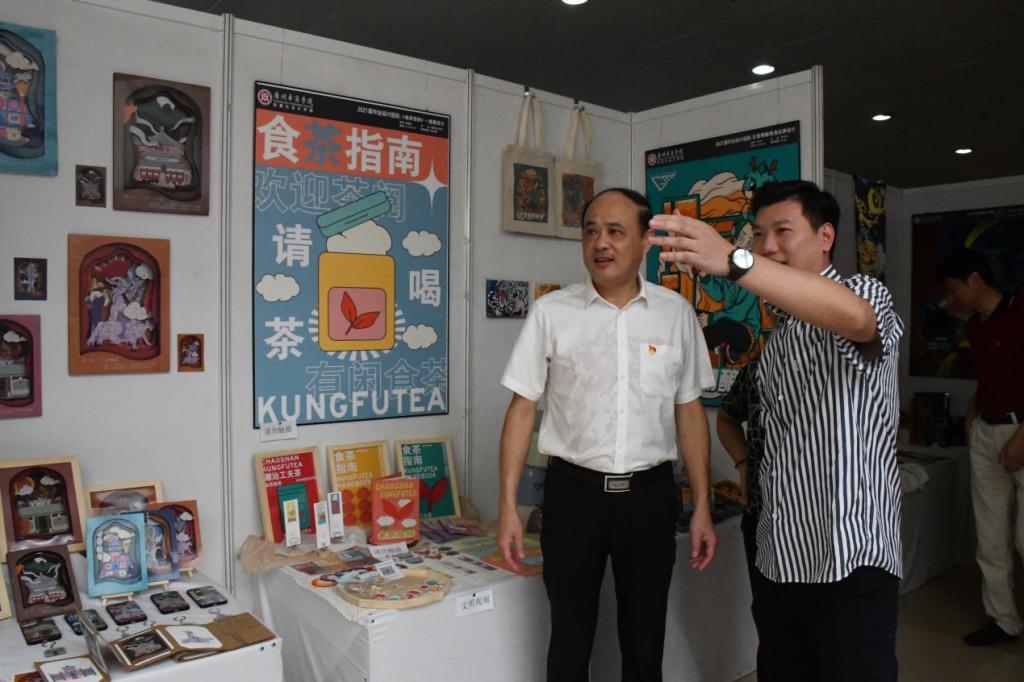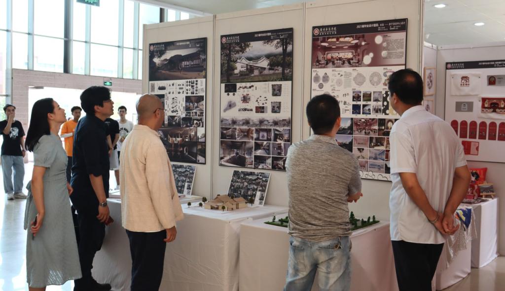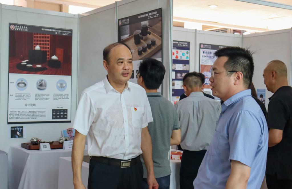 开幕式结束后,参展人员有序进入展览现场参观。作品设计者向业界人士及参观师生介绍设计理念并解答疑问,现场气氛热烈融洽。