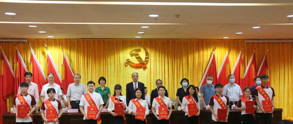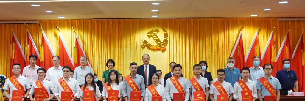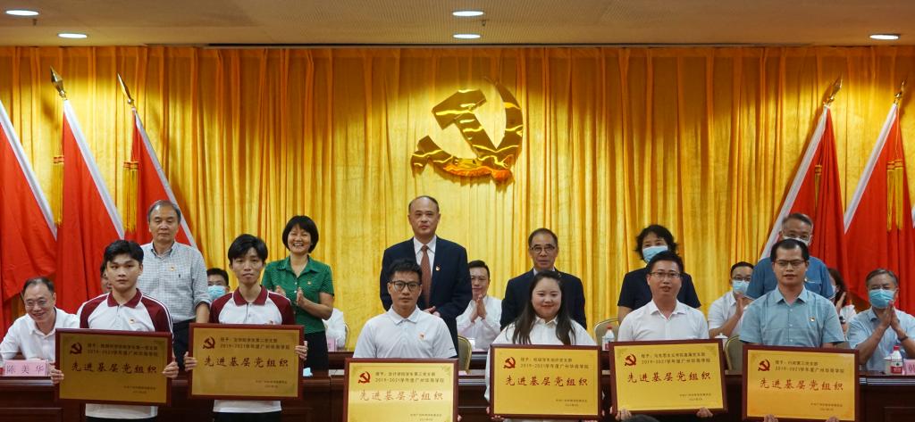 王锦秀同志宣读表彰决定,中共广东省委教育工委、中共广东省教育厅党组授予黄国富、吕书勉两名同志“优秀共产党员”、“优秀党务工作者”称号,中共广东省教育工委授予王国庆同志2020年度“学习强国”广东学习平台高校通讯站学习积极分子称号,鸭脖授予彭强等126名同志为“优秀共产党员”,杨阳等12名同志为“优秀党务工作者”,行政第三党支部等6个基层组织为“先进基层党组织”,朱芳芳等20名同志为“学习标兵”。