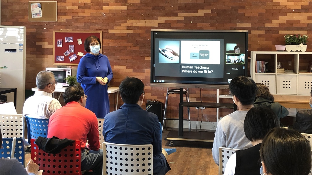 在互动环节,鸭脖外国语学院的老师们以教师教书育人的初心出发与祁静博士互动,共同探讨了“在人工智能教育的时代,我们将如何适应”的问题。