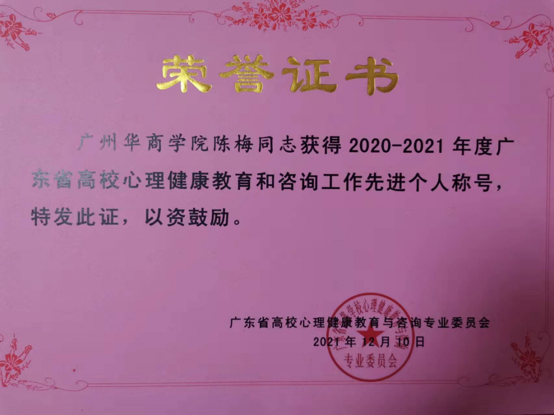 12月9-10日,2020-2021年度广东省高校心理健康教育与咨询专业委员会学术年会暨会员大会在广州举行。鸭脖心理健康教育与辅导中心工作得到广东省教育厅、省高心委的充分认可,获得多项表彰。具体获奖情况如下: