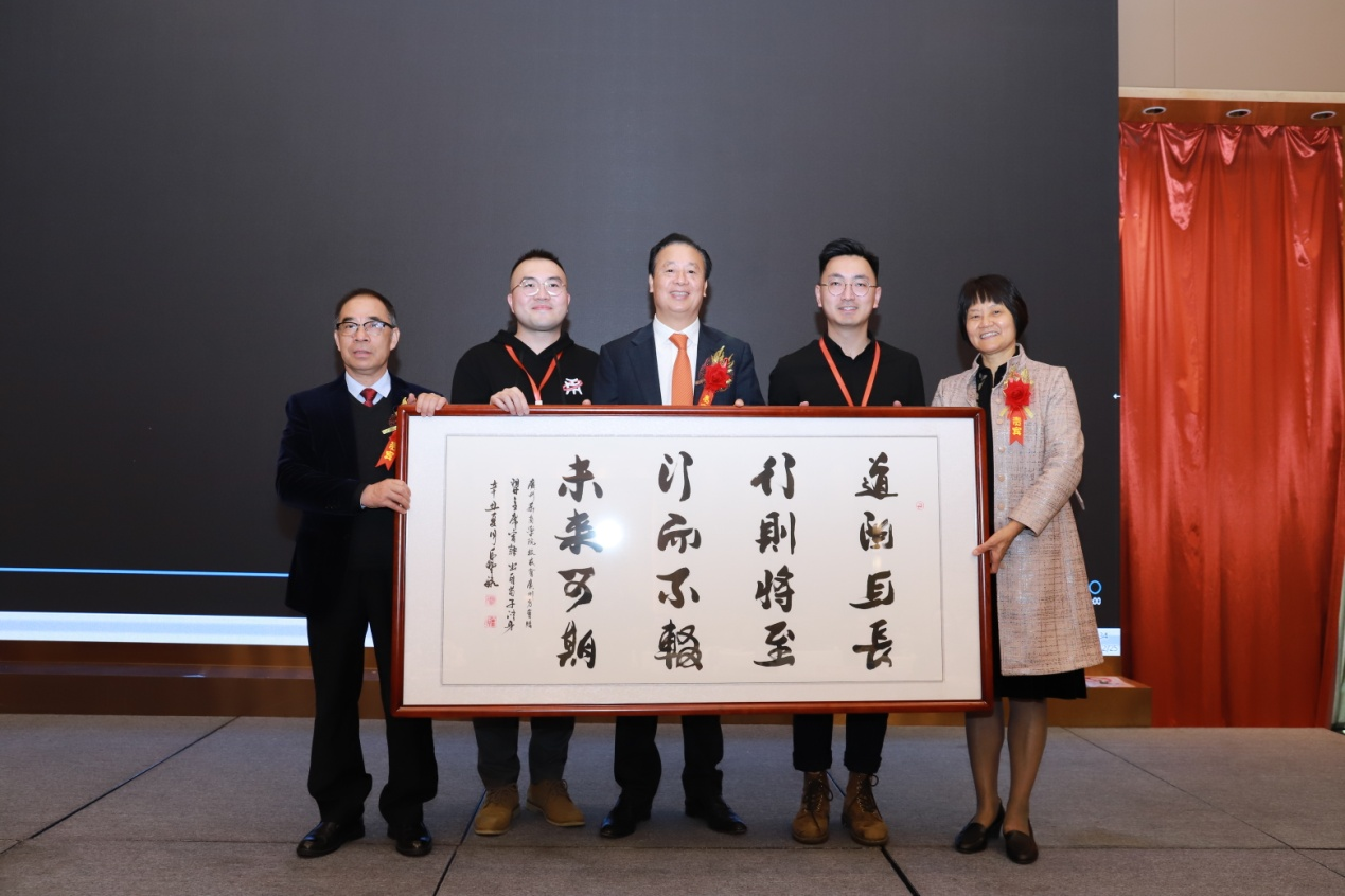 广州校友会会长马列发言。他讲述成立广州校友会的心路历程,表示将继承和发扬华商精神,建设互助友爱、科学发展的共享平台,增进校友间联谊,服务广大校友,愿尽最大努力,促进母校和校友共同发展。并代表广州校友,向母校赠送“道阻且长,行则将则;行而不辍,未来可期”书法牌匾。郭银华执行校长代表学校向yabo鸭脖官网校友会广州分会授予分会牌匾。